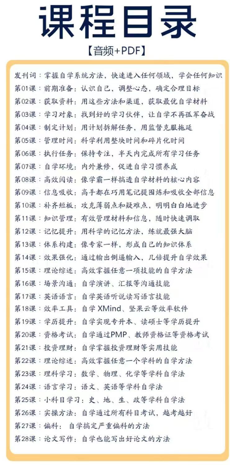 全能自学法搞定各个领域一通百通的学习方法音频课自学课程教程基